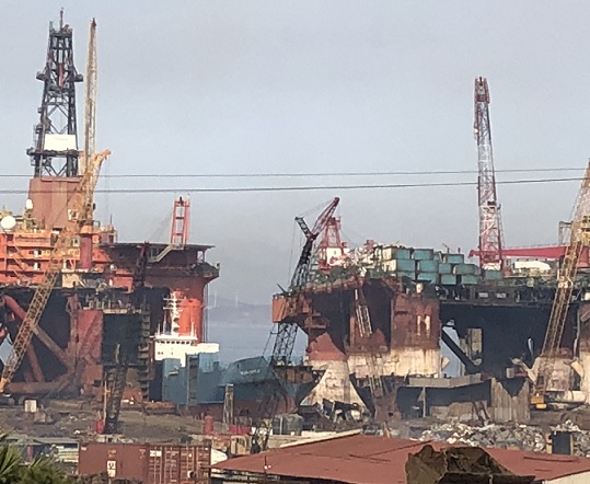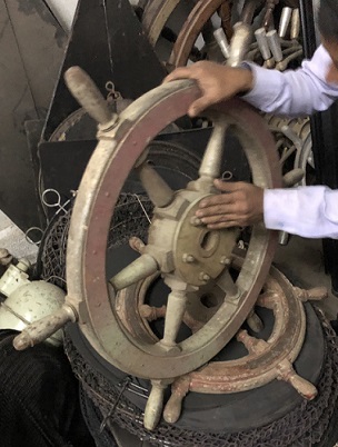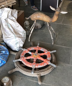 Buying Trip November 2021: ALANG, India Lots of passenger ships (cruise ships) are in Alang currently; they're not the favorite (read here) buy for those folks that make money in scrapping vessels as there's not as much recoverable steel as there is in tankers or container ships. Therefore, some sellers charge premium rates for items that have name recognition, such as liferings and oars. Vessel salvage include pieces from (but not limited to) the following ships (scrapped, retro or refitted or renamed): Altus Optimus - Monrovia (IMO 8322662), Petrobulk Jaguar (IMO 8069515), Senshu Maru - Panama (IMO 8014473), MS Albatros - Nassau (IMO 7304314) *cruise ship, Ocean Dream (IMO 7915096) *Carnival cruise ship, Mare Caribicum (IMO 9235086), Bali Sea (IMO 8106068), Karnika - Nassau (IMO 8521220) *Crown Princess, then Zen Cruises ship, APL Japan (IMO 9074391), MV Savannah Pearl / Wren Arrow (IMO 8316699), Sulphur Garland (IMO 9209013), MT Alahan - Istanbul (IMO 8712154), Marco Polo (IMO 6417097) *German-built Soviet cruise ship, FSO Angsi (IMO 8029351), M/T Taihua Glory, M/S Leisure World (IMO #6921828), Grand Celebration (IMO #8314134), MV Magellan (IMO# 8217881), Carnival Fascination's Casino Royale (IMO #9041253) |
