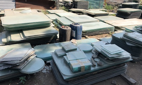 a mountain of salvaged portholes to sift through... |
