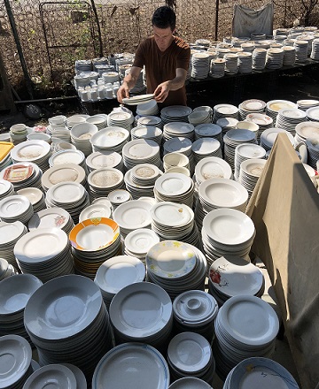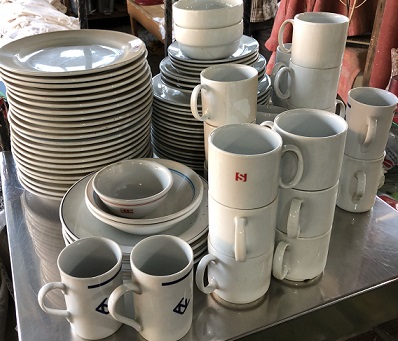 ![]() ...by comparison to the unique salvaged original crockery we scrounge for, this is what most vessels use today - plastic dishware... |