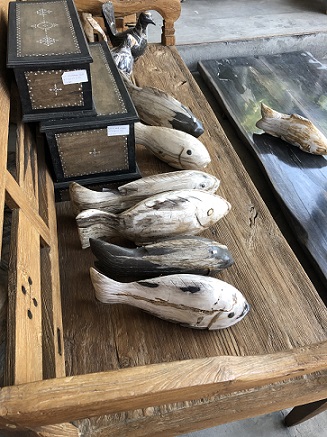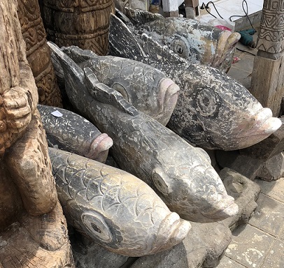 hand carved teak root "happy fish" on stand - due in store April 2020 |