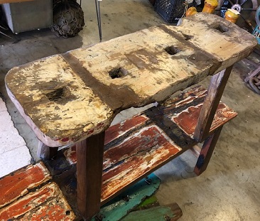 more detail of the image shown to the left; the piece of the fishing boats we reuse as a stool top... |