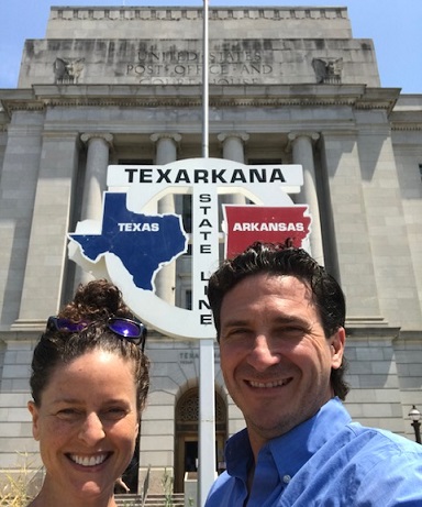 June - stopped at the border on the way to Hot Springs National Park. |