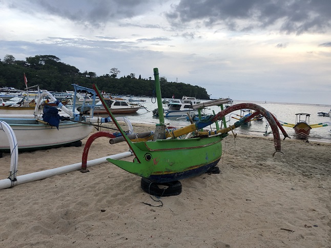 very colorful Balinese ceremonial dugout fishing boat |