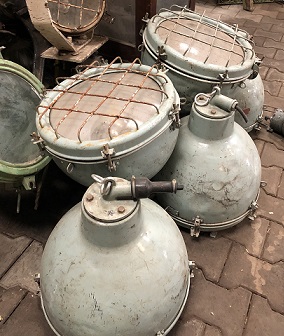 a good haul of original brass ship lights, heading to the polish wheels |