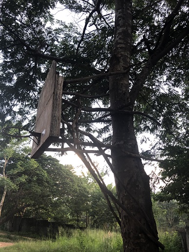 some resourceful folks made their own b-ball hoop with logs |