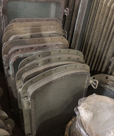 ![]() some more great brass portholes and deadlights (fixed windows); ready to be stripped and polished for us |