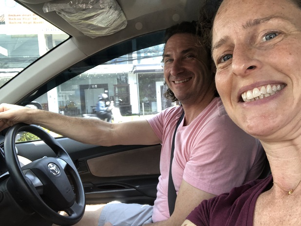 trying out one of the new styles of reclaimed boatwood "sofas" we had made... comfortable! |