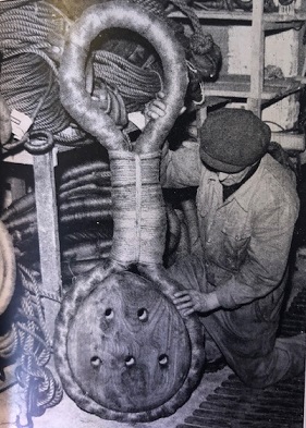 run, serving many of the same purposed block pulleys would have in rigging.![]() Pic above shows an enormous 5-hole deadeye used on the bowsprit. (photo credit/reference: Nat'l Geo Soc.'s Men, Ships and the Sea. pg 145) |