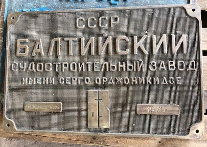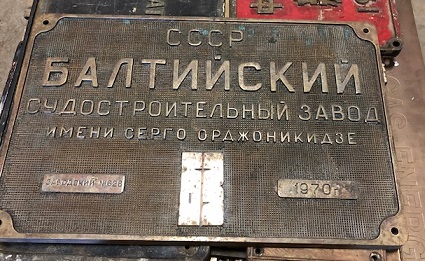 ![]() salvaged brass builder plate: Baltic Shipbuilding Plant (Soviet Union) CCCP - Serial No. 633, dated 1972 appx 30" x 19" 91 lbs: 1 available ($1500) |