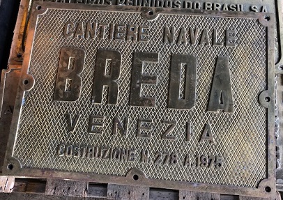 ![]() salvaged large brass builder plate (Italy) Cantiere Navale BREDA Venezia Costruzione No. 278, A. 1975 appx 25" x 35", 106 lbs available ($1200) |