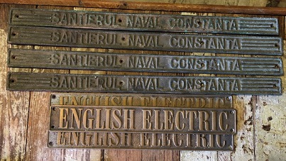 ![]() salvaged long brass placards Santierul Naval Constanta (Romania) sold out English Electric (British) appx 16"x2 1/4": 1 available ($200) |