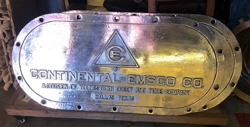 ![]() salvaged original aluminum dredge ship's (mud pumps) plates (INV #92/1-2) Continental - Emsco Co, Dallas Texas "A Division of Youngstown Sheet and Tube Company" appx 35" x 16", 51 lbs/each; 3 available ($550/each: SALE: $350/each) |