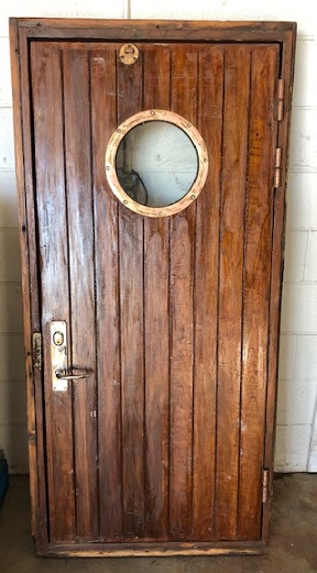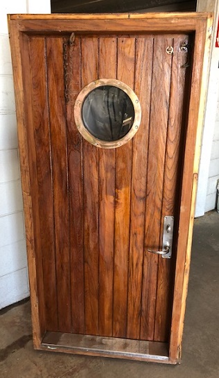 ![]() salvaged original ship's door #5 brass deadlight / fixed window front and back. *LTL freight only dims including frame: appx 32 1/4" x 67" (6" deep frame) dims door only: appx 28 1/4" x 62 1/2" (INV #54/5), 139 lbs. sold out |