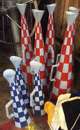 ![]() salvaged galvanized ship lanterns w/ Fresnel lenses |