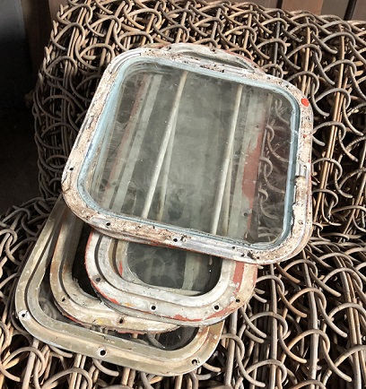 ![]() some more great brass portholes and deadlights (fixed windows); ready to be stripped and polished for us |