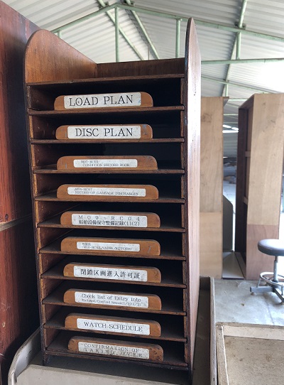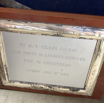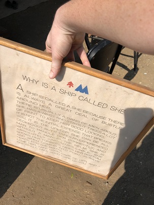 Salvaged name board from the Sotra Spirit. When it was decided it would be headed to the scrap yard, the name was changed to Tra Spirit. |