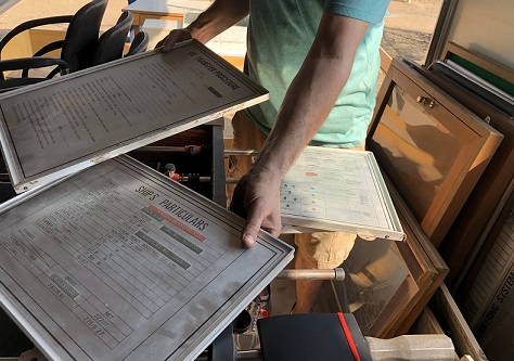 a mountain of salvaged portholes to sift through... |