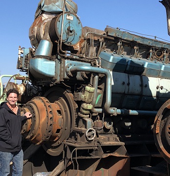 ![]() it's not ship salvage, but the pilot in him can't resist poking around this jet engine... |