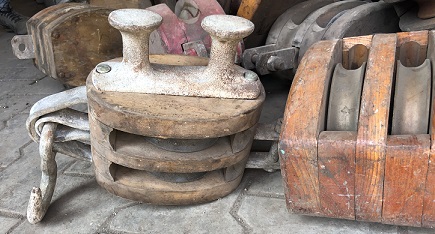 ![]() picked a good supply of original ship block pulleys - this one has a unique adaptation with a bollard affixed to it |