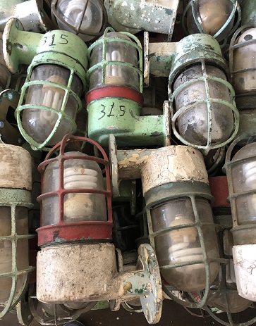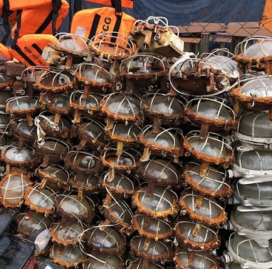 a good haul of original brass ship lights, heading to the polish wheels |