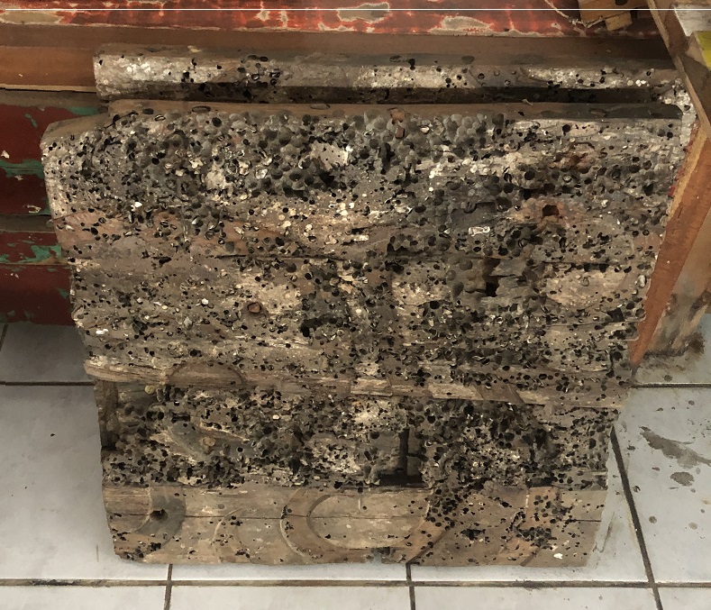 more detail of the image shown to the left; the piece of the fishing boats we reuse as a stool top... |