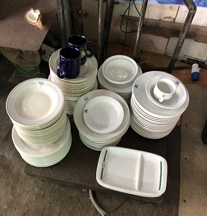 ![]() ...by comparison to the unique salvaged original crockery we scrounge for, this is what most vessels use today - plastic dishware... |