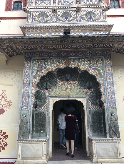 ![]() at "City Palace", an elaborately painted peacock themed entry to one of the courtyards |