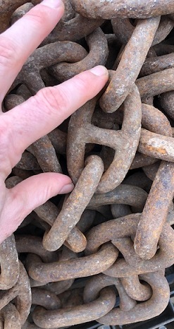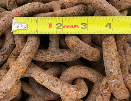 ![]() salvaged stud link anchor chain: 3 1/2" links "a lot" available by the foot ($3 per link + $25 cut fee) |