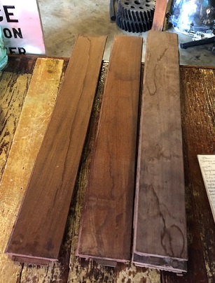 ![]() salvaged TEAK ship's decking: 27 1/2 x 3 3/4" slats appx 3 lbs per piece. (INV# 30) Pics: above left: 3 boards (left 2 after teak oil, right 1 no oil) above right: back side of 2 slat boards. sold out |