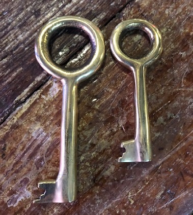![]() new production solid brass skeleton keys: "LG" (3 1/4") and "SM" (2 1/2") |