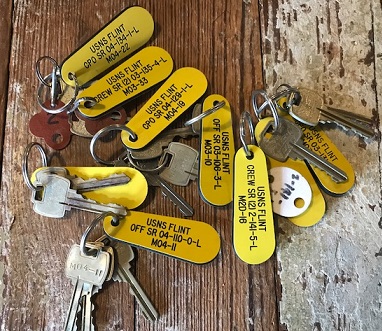 ![]() various salvaged keys from the USNS Flint (US Navy ammunition ship built at Ingalls (MS), decommissioned 1995, transferred to Military Sealift Command) |