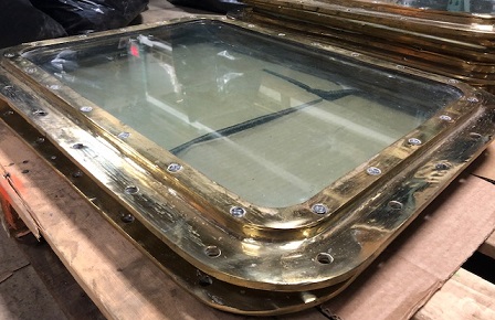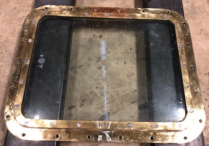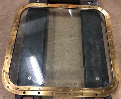 ![]() salvaged brass rectangular deadlight (fixed port) window appx 20 1/4 x 26" OD x 15 3/4 x 21 1/2" GD, appx 41 lbs/each (#1m) ($425/each) |