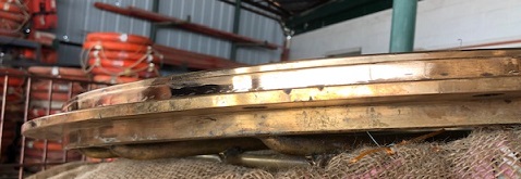 ![]() salvaged brass round 2 dog portholes (INV#20/4) w/FLAT perimeter edge appx 21 1/2" OD, 13 3/4" GD, appx 70-75 lbs/each sold out |