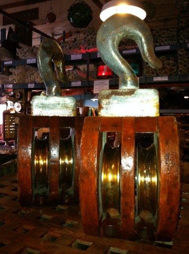(CLICK HERE): Most have been reconditioned, stripped and polished. These come to us in a variety of sizes, some with hooks, eyes, beckets, etc and some without. Single wheeled, double sheaved (wheels) and occasionally a triple or more here and there... ...and deadeyes. |