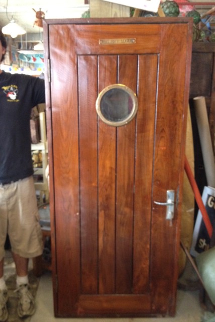 Doors (CLICK HERE): All of our ship doors are salvaged from actual ships - passenger, ferry, yacht, merchant marine, etc. They have a round or square window and typically come with the frame and hardware, but not always. We only receive a few in each shipment. |